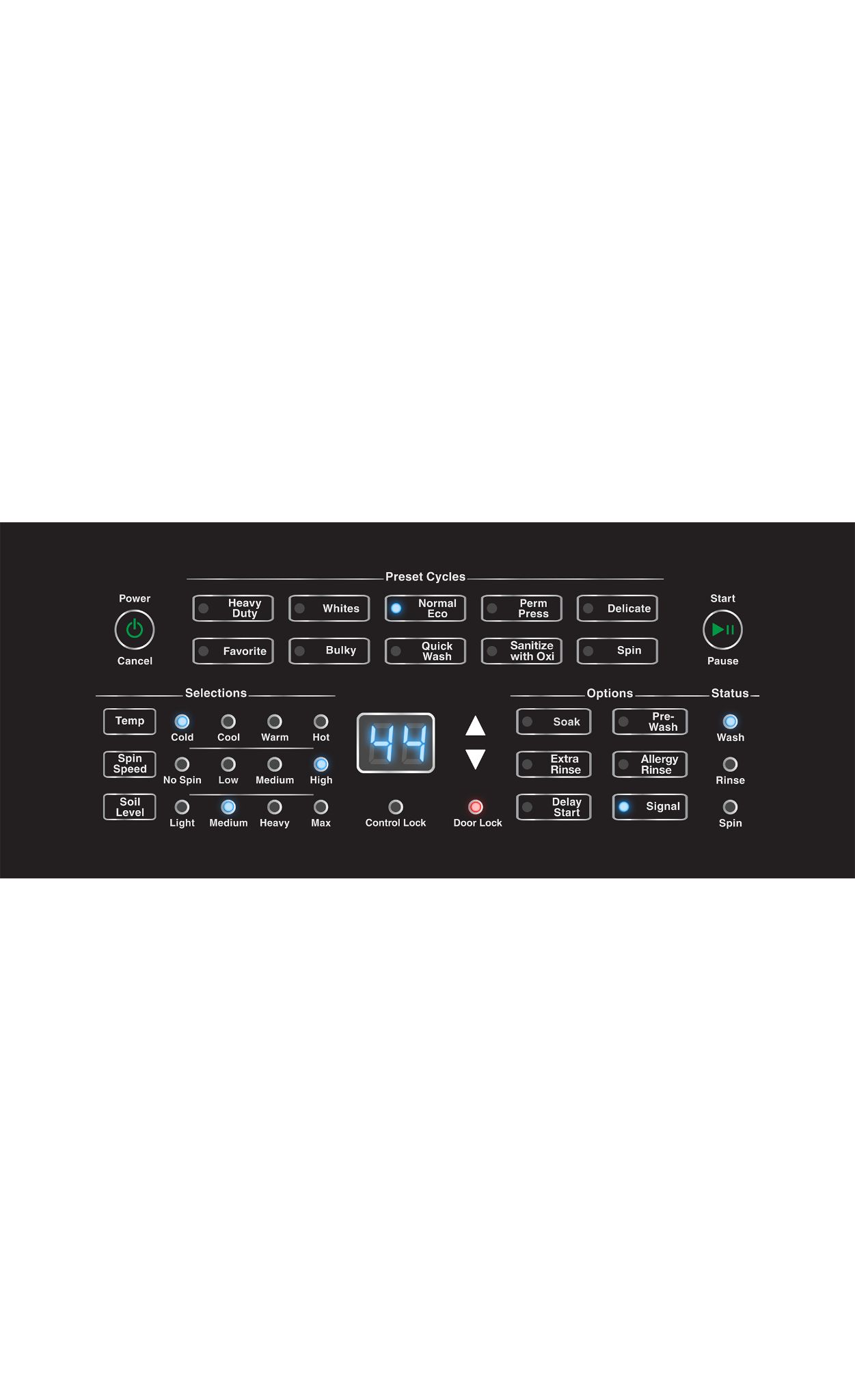 Time Remaining Display eliminates guesswork by clearly showing when your laundry will be finished.