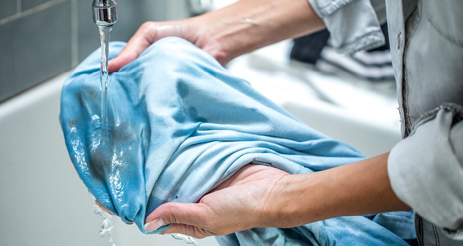 - Flush the stain from the reverse side using a lot of cold water. Do this as soon as possible.