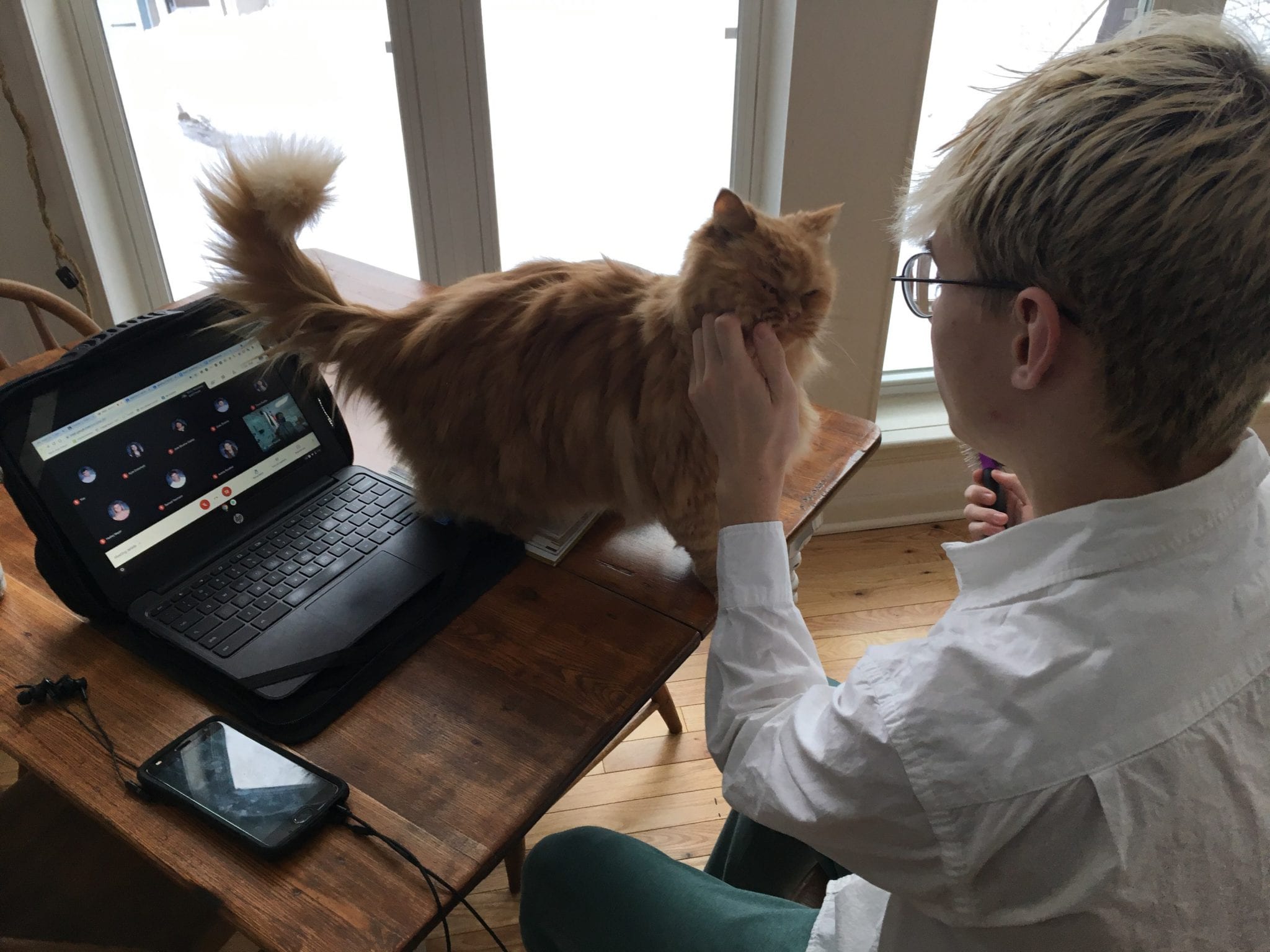Maximus isn’t like your “normal” cat – he LOVES human interaction and playing. Any time he can be around his family, Maximus is happy. He’ll often be found quietly walking around keeping a watchful eye on his loved ones and trying to be part of the action. With his human siblings at home due to COVID-19, Maximus even enjoys “studying” and regularly attends online high school and college courses. Maximus has quite the personality and lots of love to give.
