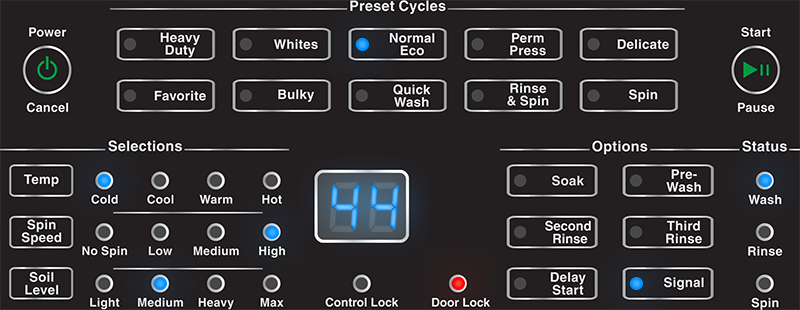 Time Remaining Display eliminates guesswork by clearly showing when your laundry will be finished.