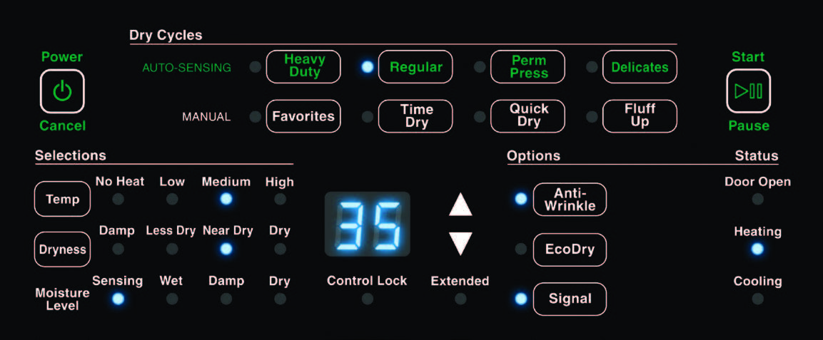 Speed Queen dryers feature multiple technologies designed to save energy and money. Our cutting-edge Eco Cycle uses an advanced heating algorithm to conserve energy while achieving an optimal dryness level. Moisture Sensing starts cooling the clothes when the load reaches the dryness level you select, reducing unnecessary drying, lowering utility costs and protecting your clothes—exactly what you’d expect out of one of the industry’s most efficient dryers.