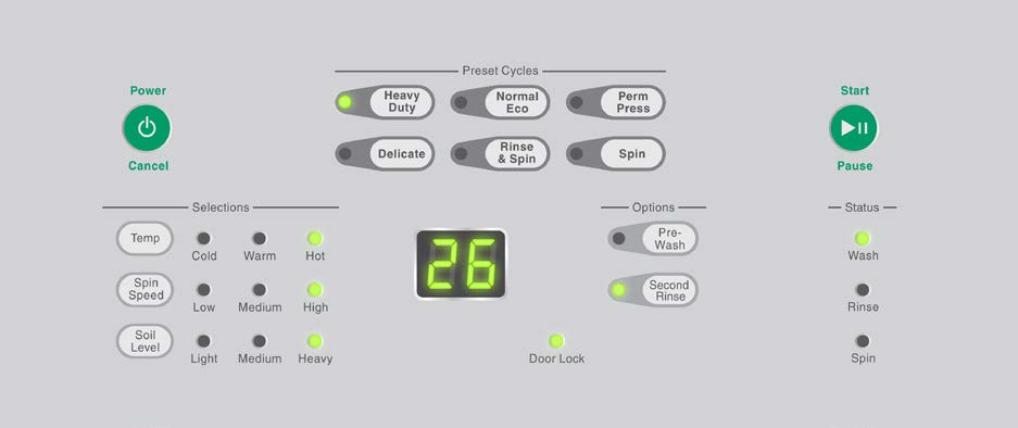 Time Remaining Display eliminates guesswork by clearly showing when your laundry will be finished.